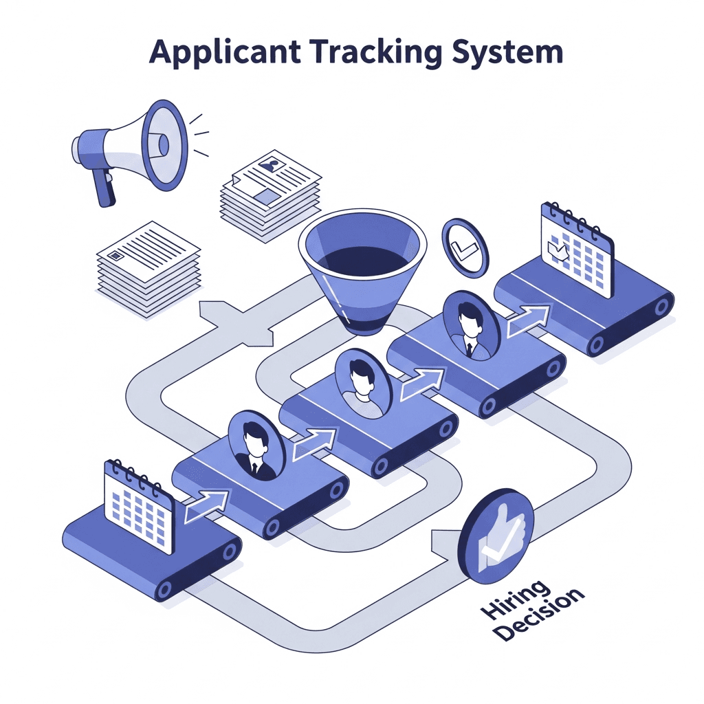 An ATS, or Applicant Tracking System, is recruiting software that manages hiring from job posting through onboarding. At its core, it automates resume screening, tracks candidates through each stage of the process, and keeps all applicant data in one place instead of scattered across inboxes and spreadsheets.