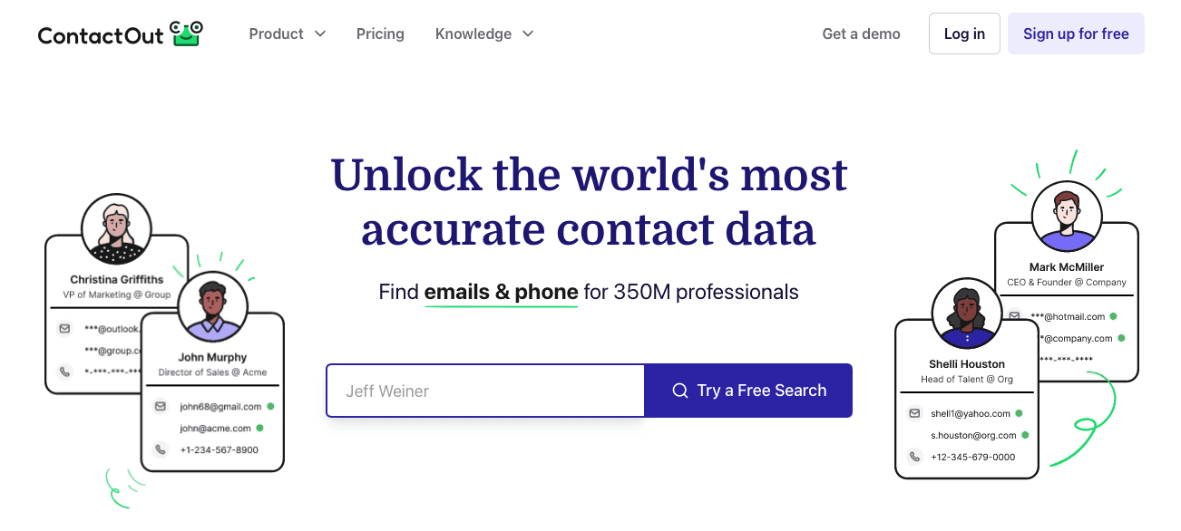 Good for: Larger recruiting teams or agencies that need phone numbers alongside emails and can work with pay-per-contact pricing to access a broad B2B database.