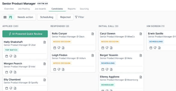 The data piece matters too. You'll see which job boards send quality applicants, how long each hiring stage takes, and where candidates drop off.