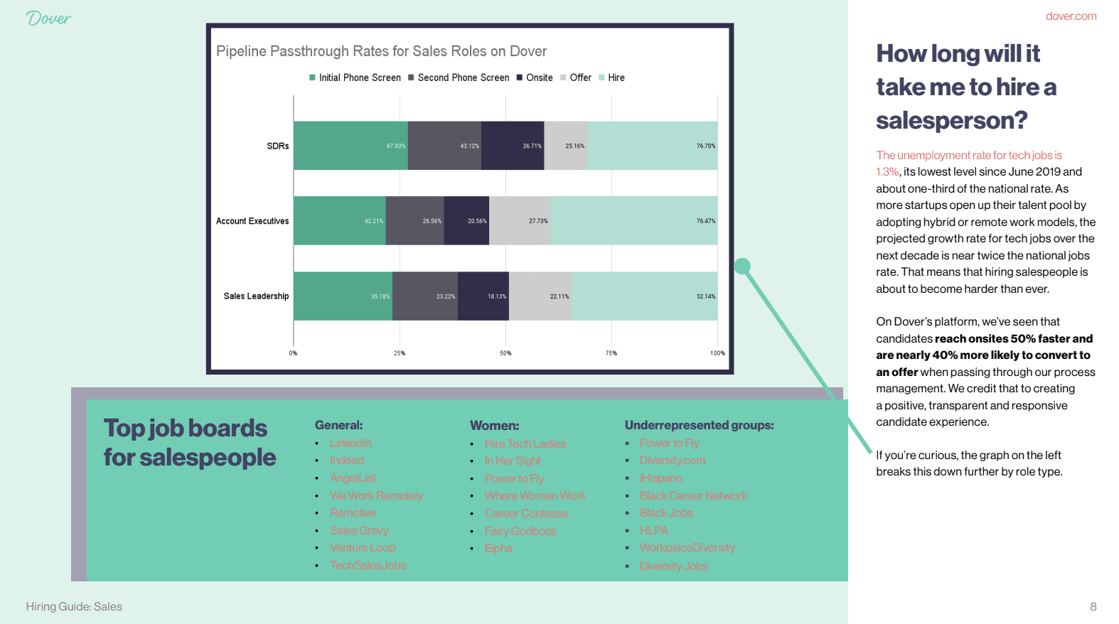 This guide aims to help you understand how to nail your first sales hire at your startup, and how to scale your team. We’ve backed it up with Dover’s internal data and insights from our work with 200+ startups.